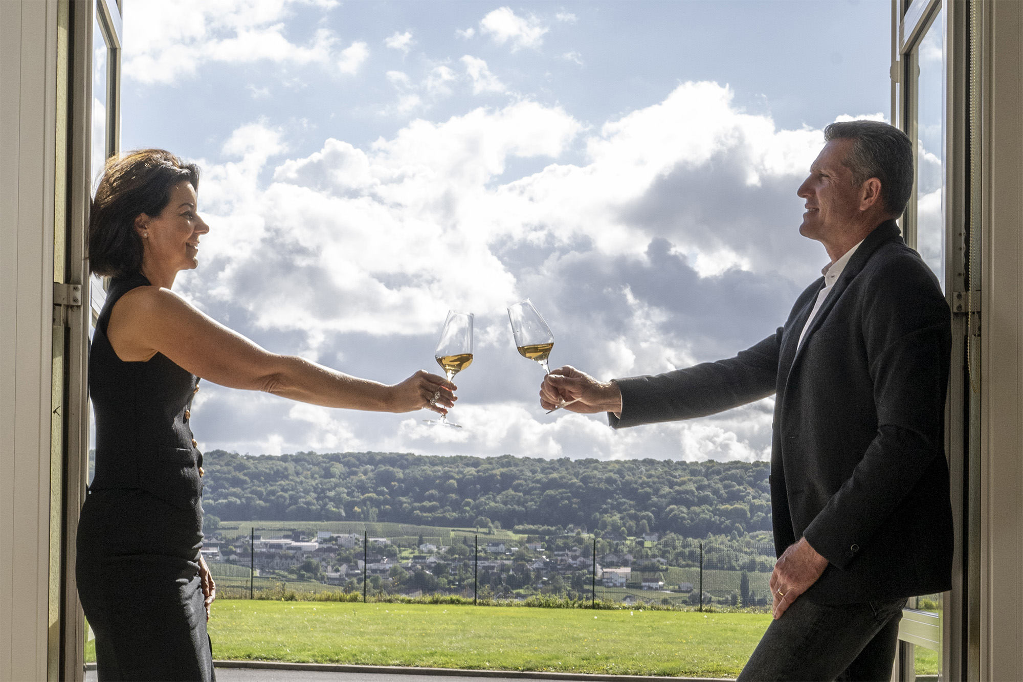 C’est de cette lignée de vignerons et de cette union qu’est née en 1996 une philosophie singulière : conjuguer la puissance et la rondeur des Pinots de la Vallée de la Marne avec la finesse et la pureté des Chardonnays de la Côte des Blancs. Le vignoble de 16 hectares aujourd’hui est conduit dans le respect du sol et de la plante, privilégiant un travail raisonné, des rendements mesurés et une recherche permanente d’équilibre naturel.