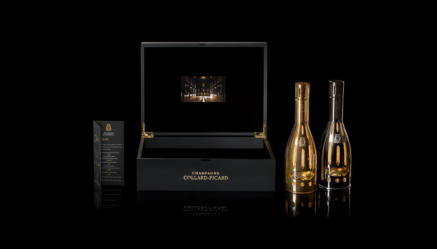 Synesthésie est une œuvre unique, proposée en édition limitée à 500 coffrets signés. Ce duo de millésimes 2006 (bouteille dorée) et 2007 (bouteille canon de fusil) partage la même origine : 80% de Chardonnay et 20% de Pinot Noir, terroirs d’exception du Mesnil-sur-Oger (Grand Cru) et de Reuil. Issus du seul cœur de cuvée, les vins sont élevés 9 mois en foudres de chêne, puis reposent en cave 17 à 18 ans avant leur révélation. À l’ouverture du coffret, un film personnalisé se déclenche, prolongeant l’expérience sensorielle. Les bouteilles s’éclairent de l’intérieur, créant une immersion visuelle et émotionnelle. Synesthésie, c’est la rencontre du Vin et de l’Art.